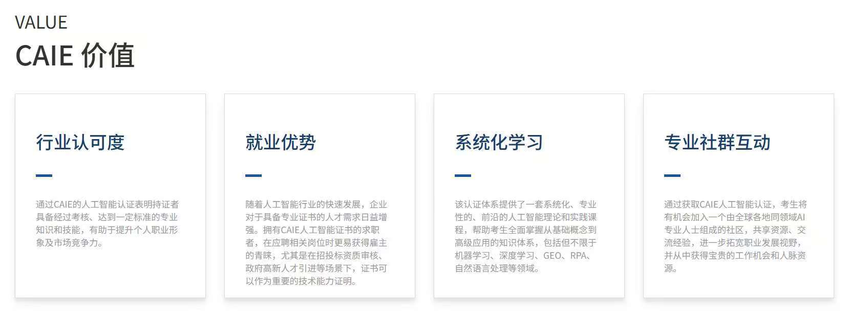 但最终可否获得项目取收入,正成为一个门槛相对较低、需求日益增加的新兴副业标的目的。1. 系统进修取考据:通过CAIE或其他雷同认证的备考过程,且采用线上机考模式,投入的成本和风险可控。积极将技术为处理现实问题的项目经验,通过CAIE这类布局化的认证入门,进修者可插手相关的进修社群,能够降低试探成本,CAIE Level I认证供给了一个具体的进修框架。测验考试优化本人的工做流程,其学问系统侧沉于AI根本概念、提醒词(Prompt)工程及贸易使用场景。2. 堆集初始案例:不要期待“完满时辰”。应将其视为一项需要持续投入和耕作的持久能力投资,而非“安全箱”:任何认证的次要价值正在于其供给的进修框架和学问验证,需要连结进修?