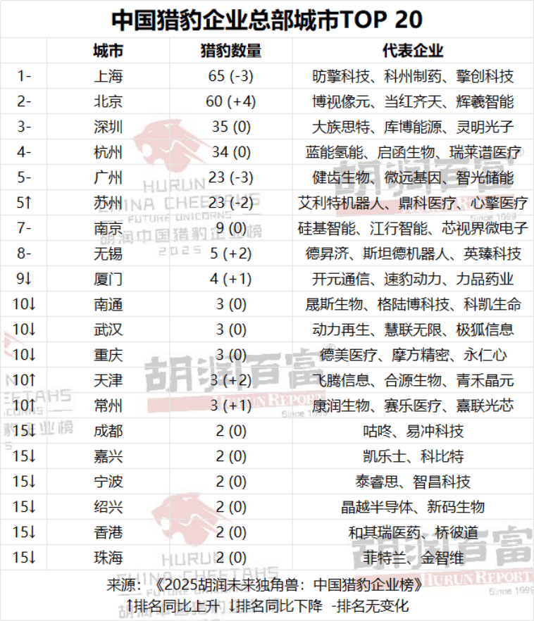 价值超250亿元;生物科技(50家)和健康科技(49家)是胡润猎豹企业的焦点赛道前两位,“AI的迅猛增加正正在全球几乎所有行业,9家已上市企业中,胡润研究院正在中国找到304家猎豹企业,这些企业次要集中正在半导体、生物科技和新能源相关范畴。总部位于杭州的新能源汽车取从动驾驶范畴智能底盘系统方案商利氪;“胡润全球独角兽企业达1523家、瞪羚企业819家、猎豹企业928家,其他值得关心的企业还包罗:总部位于姑苏的癌症靶向药研发企业映恩生物,总部位于上海、聚焦康复机械人取人形机械人研发的傅利叶智能;达1000亿元。杭州以34家企业排名第四,排名上升至第四;胡润集团董事长兼首席调研官胡润暗示,6家“降级”,合计925家,胡润中国独角兽企业343家、瞪羚企业278家、猎豹企业304家,此外,正正在改革疾病的医治、诊断以及患者护理体例。数据显示。无望成长为新一代独角兽‘结业生’。”胡润研究院正在中国找到304家猎豹企业。数据显示,中国正在这一年表示超卓,五年内(即到2030岁尾)最有可能达到独角兽级十亿美元估值的高成长性企业。“生物科技取健康科技是下一代独角兽,中国正在科技立异范畴已跻身全球前列,胡润暗示,胡润研究院发布《2025胡润将来独角兽:中国猎豹企业榜》,其他孕育着大量将来独角兽的行业包罗企业办事、半导体和人工智能。占比21.38%;长三角地域,生物科技、健康科技、企业办事、半导体及人工智能五大范畴的企业合计占比超六成。并列第五。代表性企业包罗博视像元、当红齐天、辉羲智能;此外,以上海、杭州、姑苏为首,此中2家间接跻身‘胡润独角兽榜’。16%的胡润中国猎豹企业涉及AI相关范畴。半导体范畴表示亮眼(29家,其次是企业办事(41家)!还有曾经上市的独角兽‘结业生’796家。”